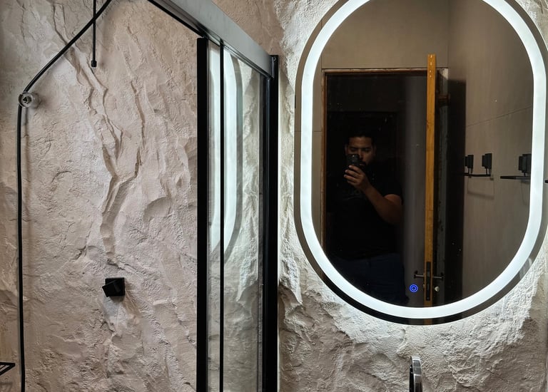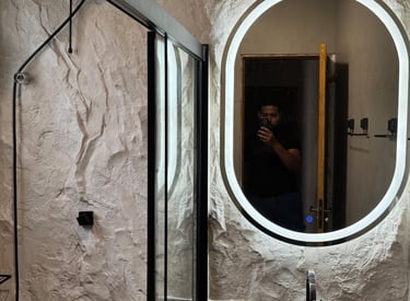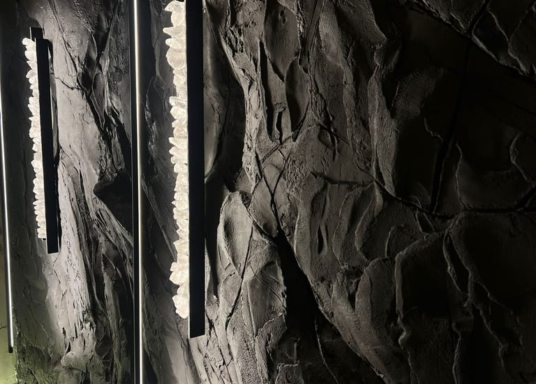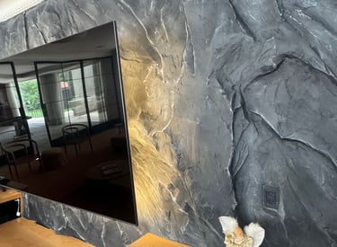 Como artista plástico especializado em acabamento de rocha, crio obras que combinam textura e elegância com um toque contemporâneo.